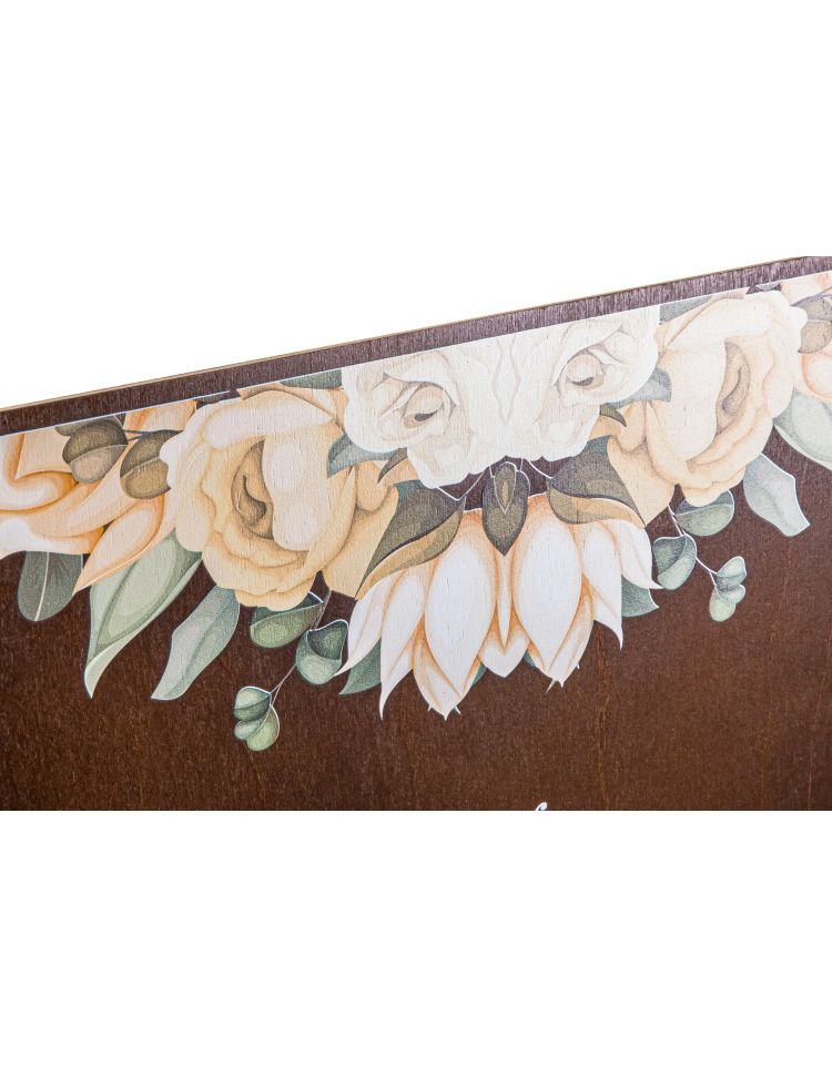 Dodatkowo drewniana naturalna tablica, jest pięknym dodatkiem w dekoracji sali.