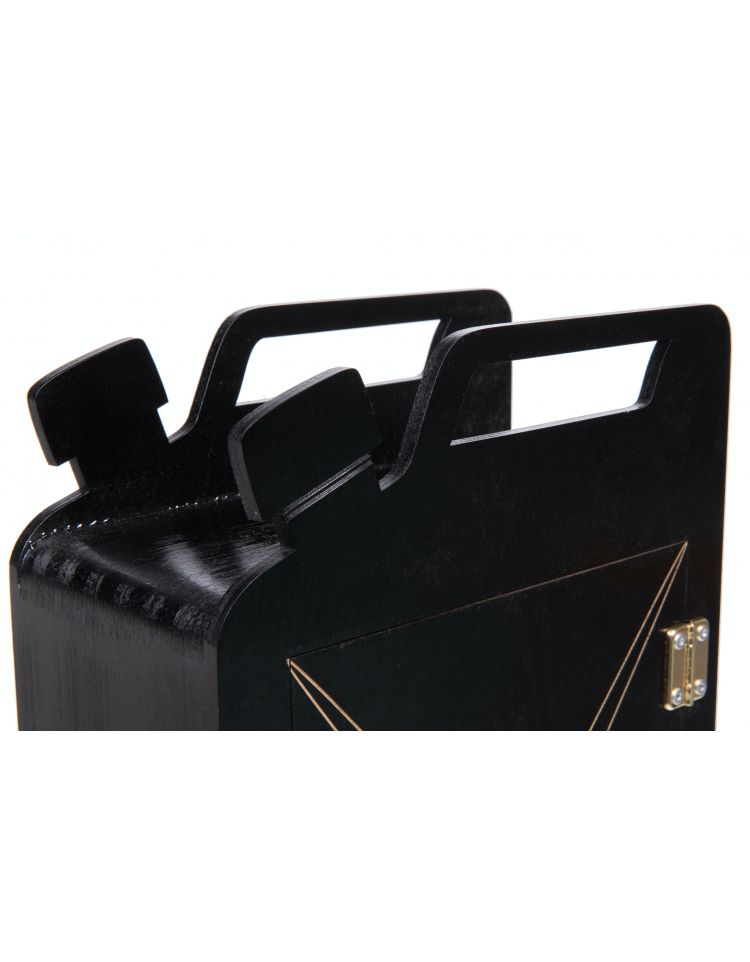 Do środka karnistra mieści się butelka na whisky/karafka i 2 szklanki.