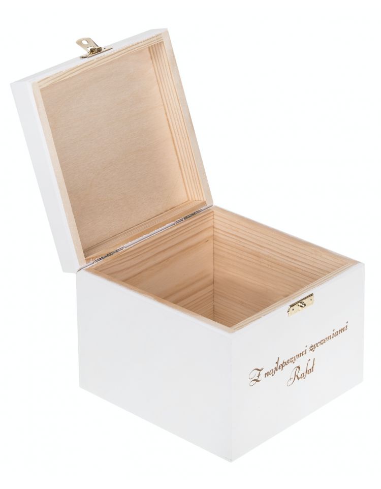 Drewniane pudełko 16x16x13, kolor biały, grawer dzień kobiet